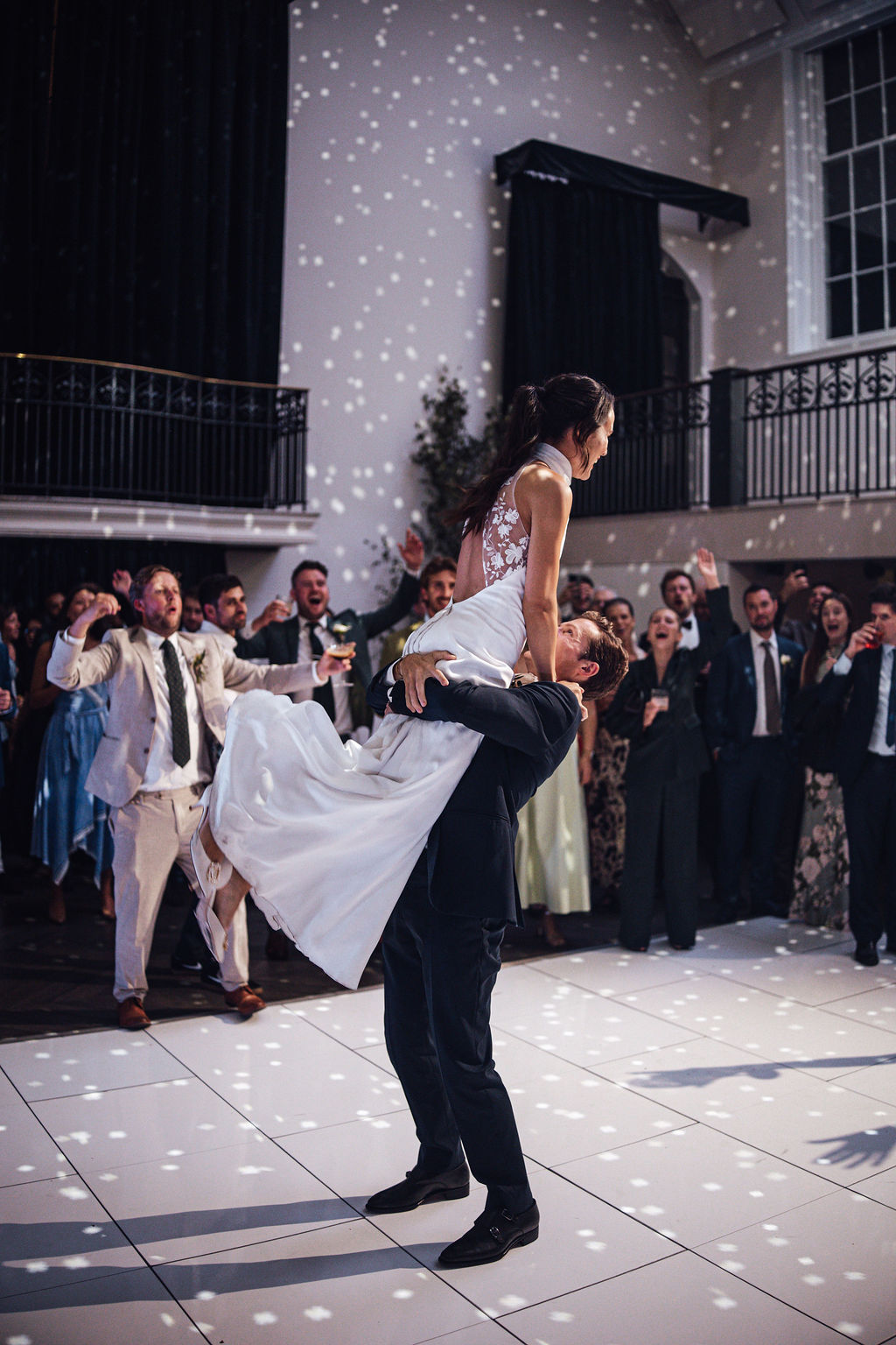 New Yorkers Henry and Marissa wanted to have the ultimate December Mayfair wedding. By adding fun little touches referencing Henry’s London heritage, such as serving traditional fish & chips with vinegar and ketchup on the tables, and a wedding cake made to look like a huge stack of vinyl records as a nod to the couple’s love of music, we created something very special together with this one. The bespoke commissioned ‘Manhattan Bar’ lit up in neon to welcome guests into the wooden panelled bar for post-dinner drinks, before carrying on the party at the iconic Annabel’s night club in Mayfair.