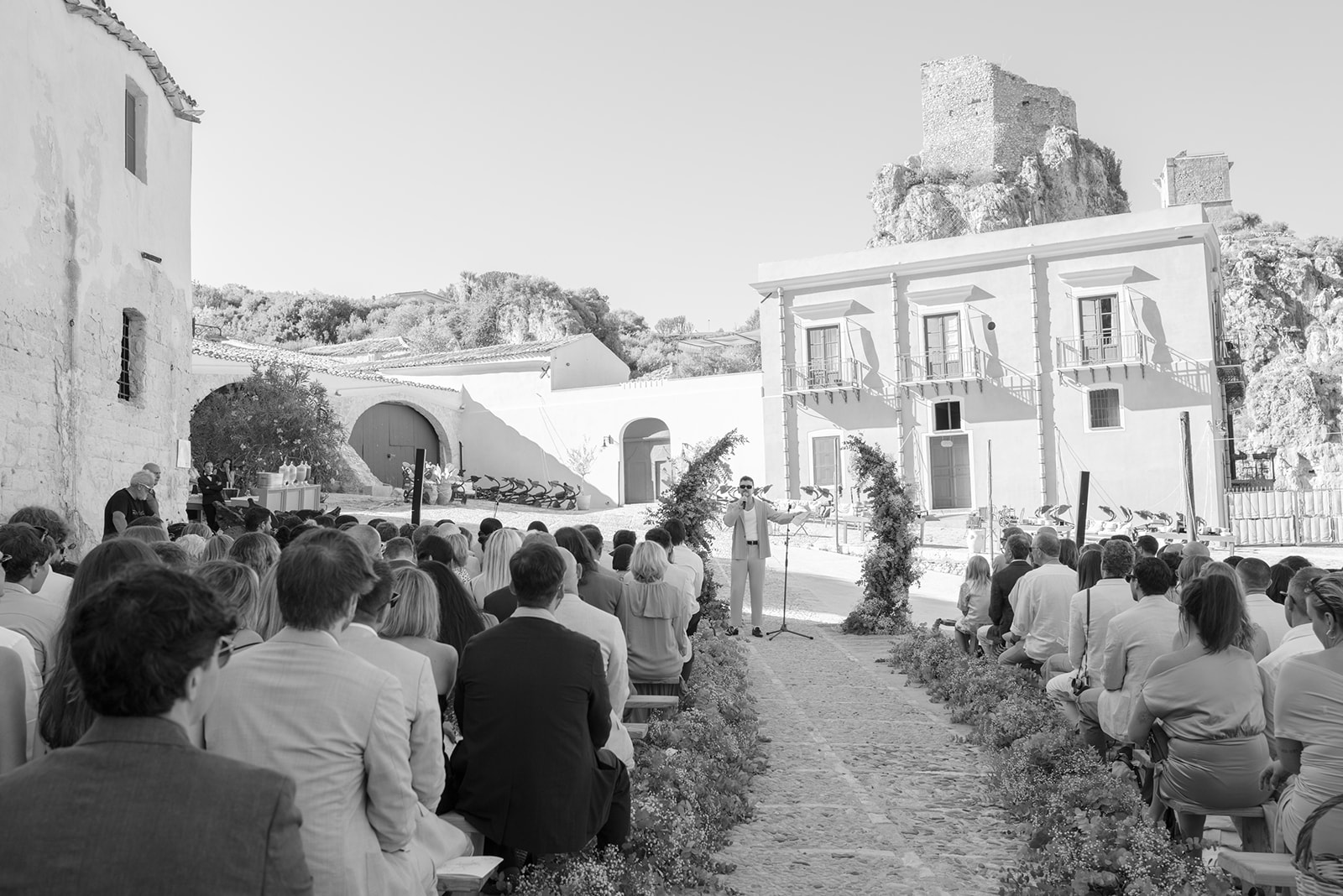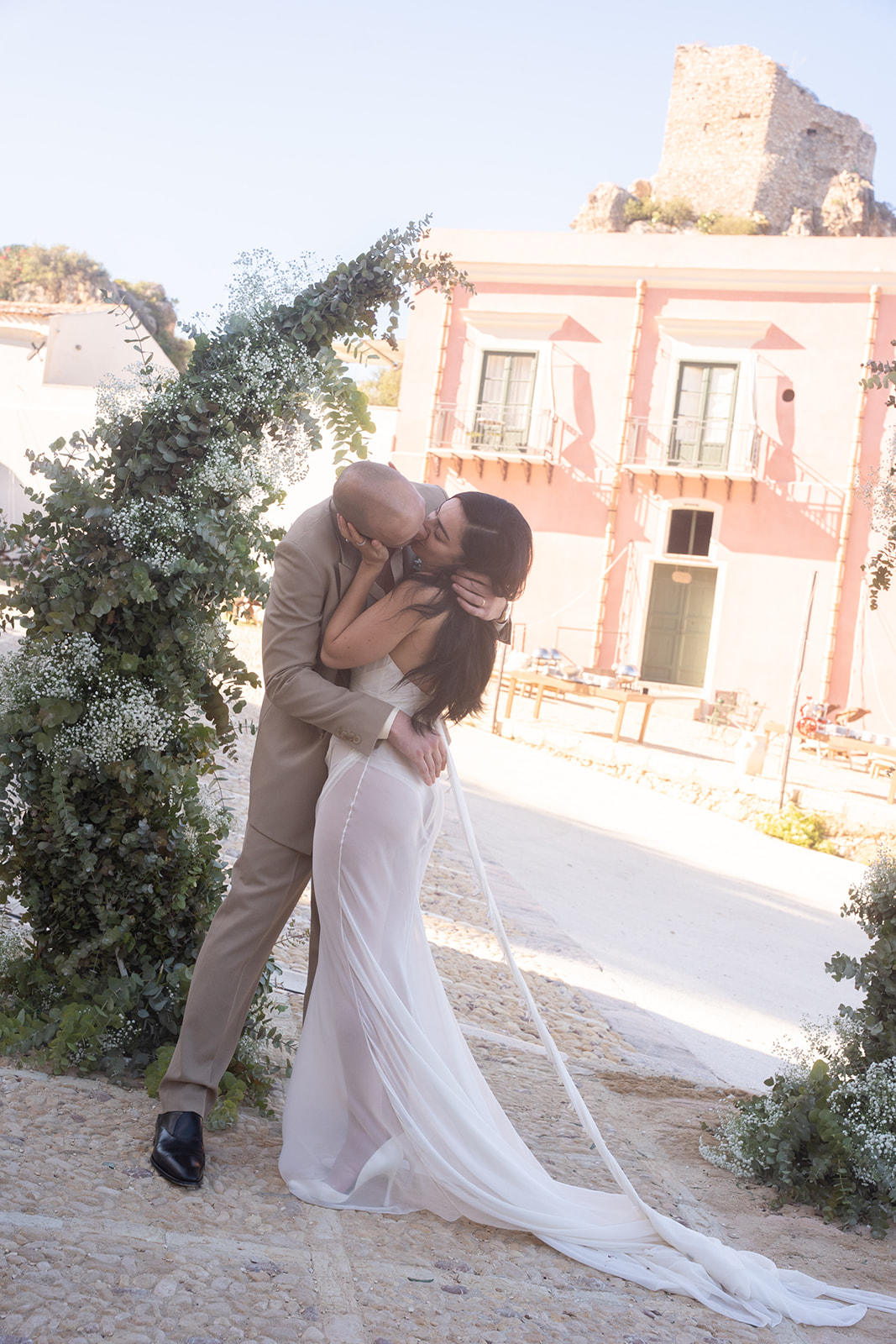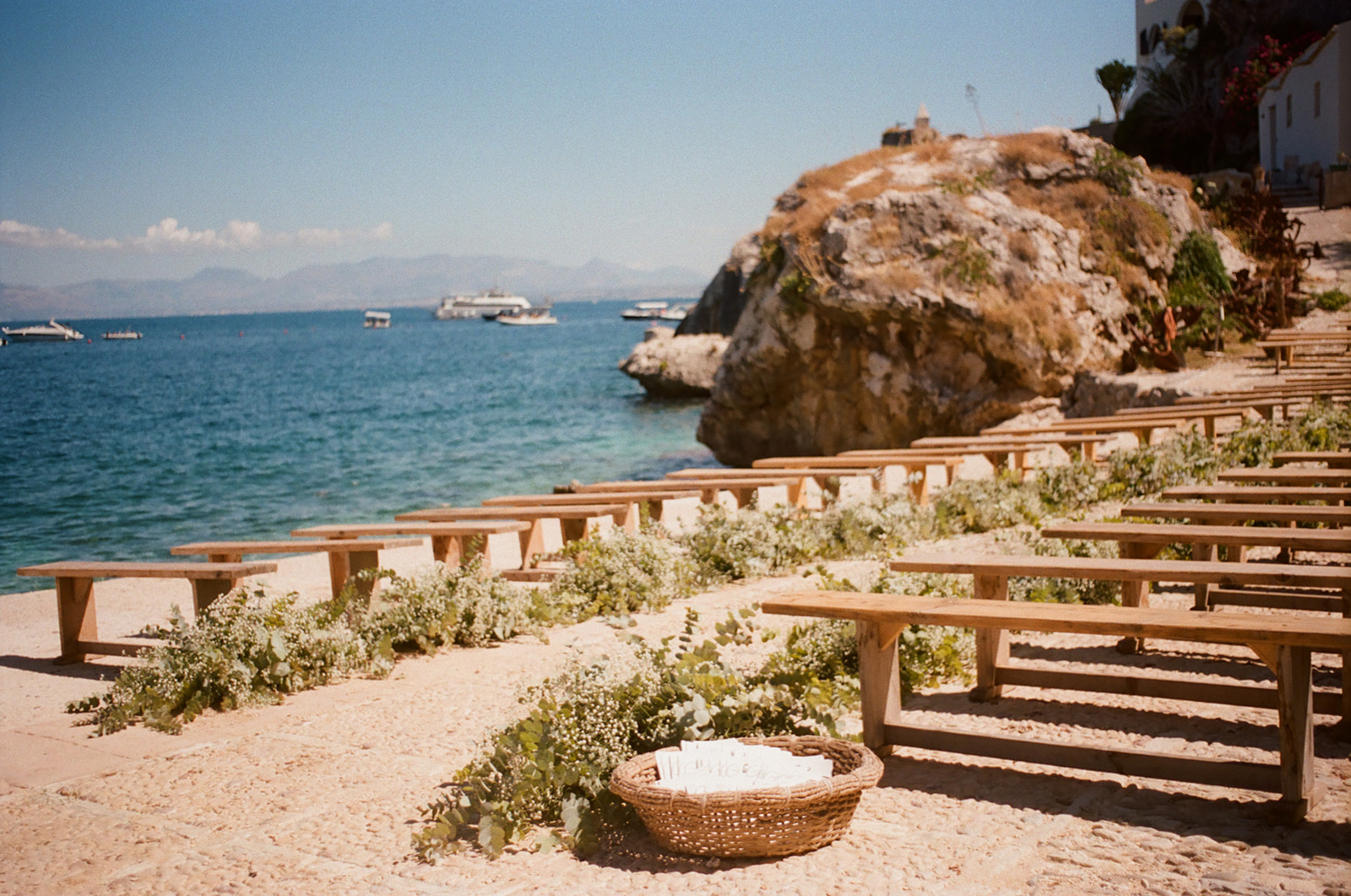 For Charli & George we created an old school Italian glamour feel for the ceremony and reception, and with plenty of Aperol Spritz! Guests were entertained by a local Sicilian roaming band before heading through to a dinner of pasta, steak & miniature Sicilian desserts. Drinks flowed all night, with limoncello basil spritz and margaritas on the menu, and a secret martini bar on the beach. After the fireworks, plenty of world class DJs took to the decks – this was a party for the ages!.