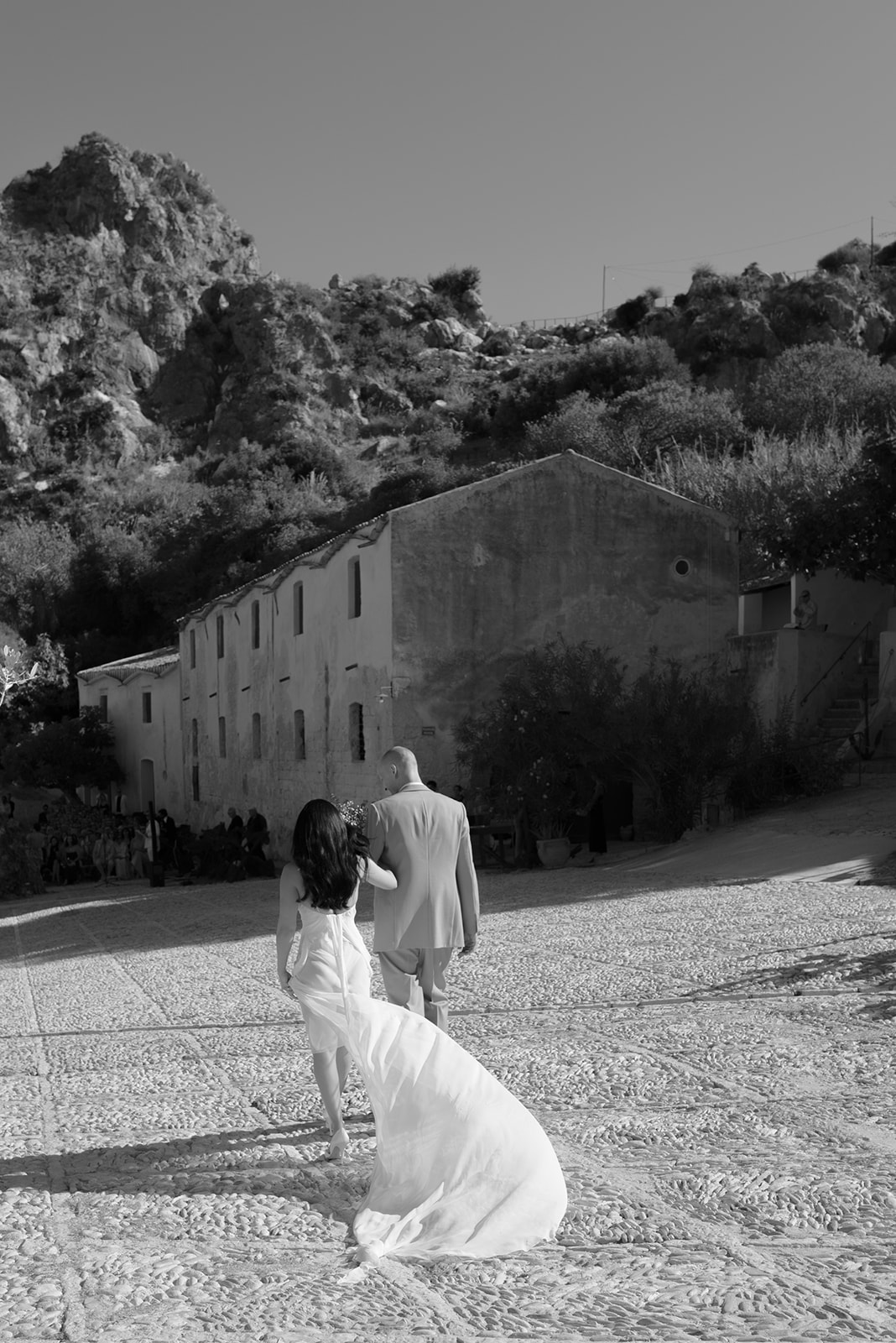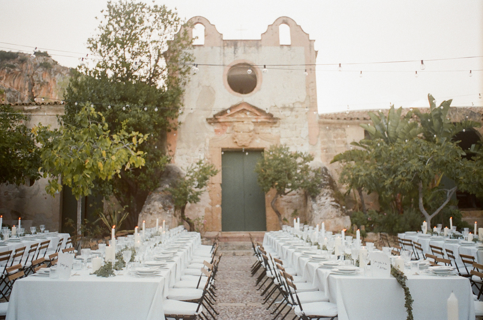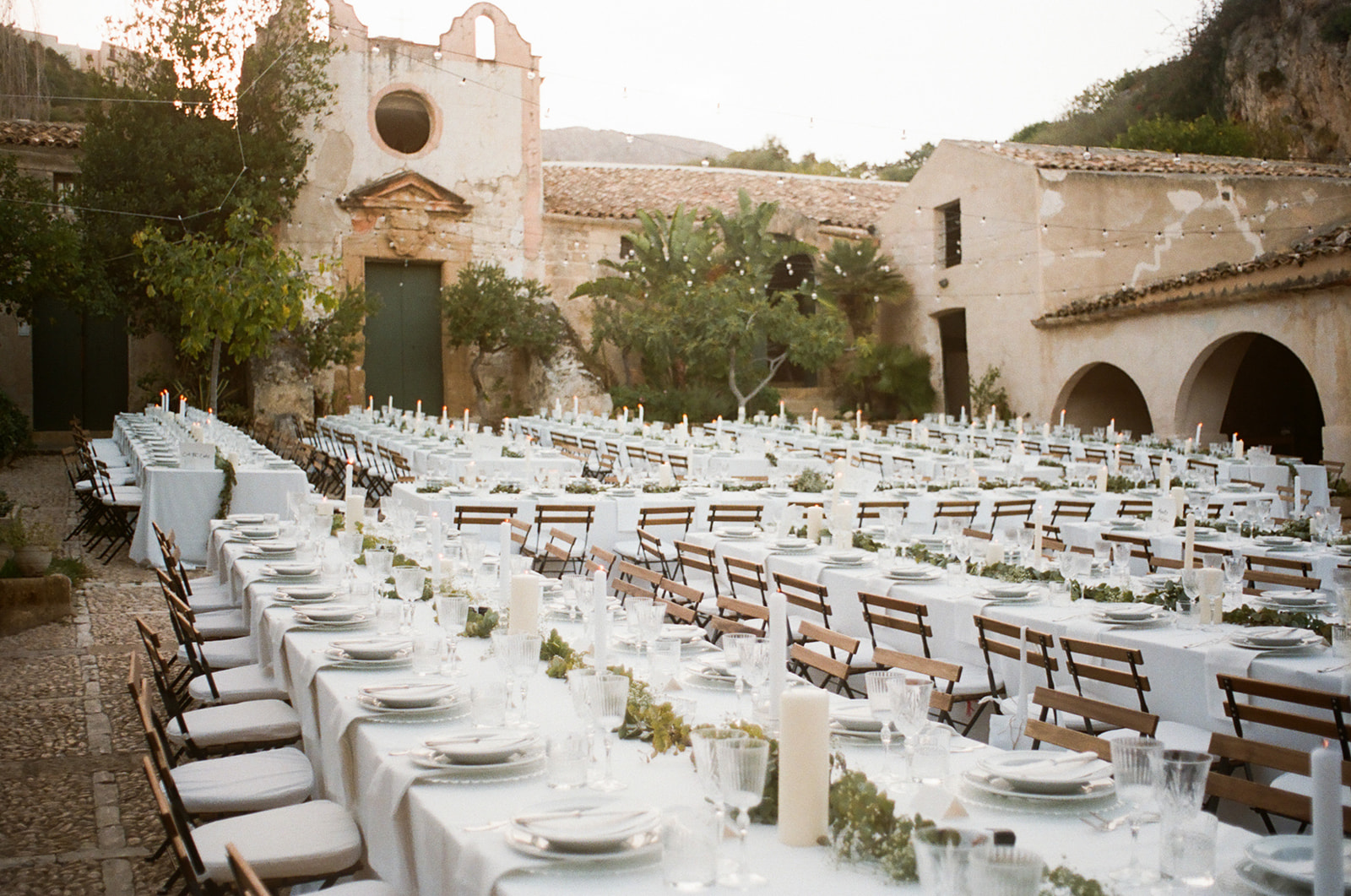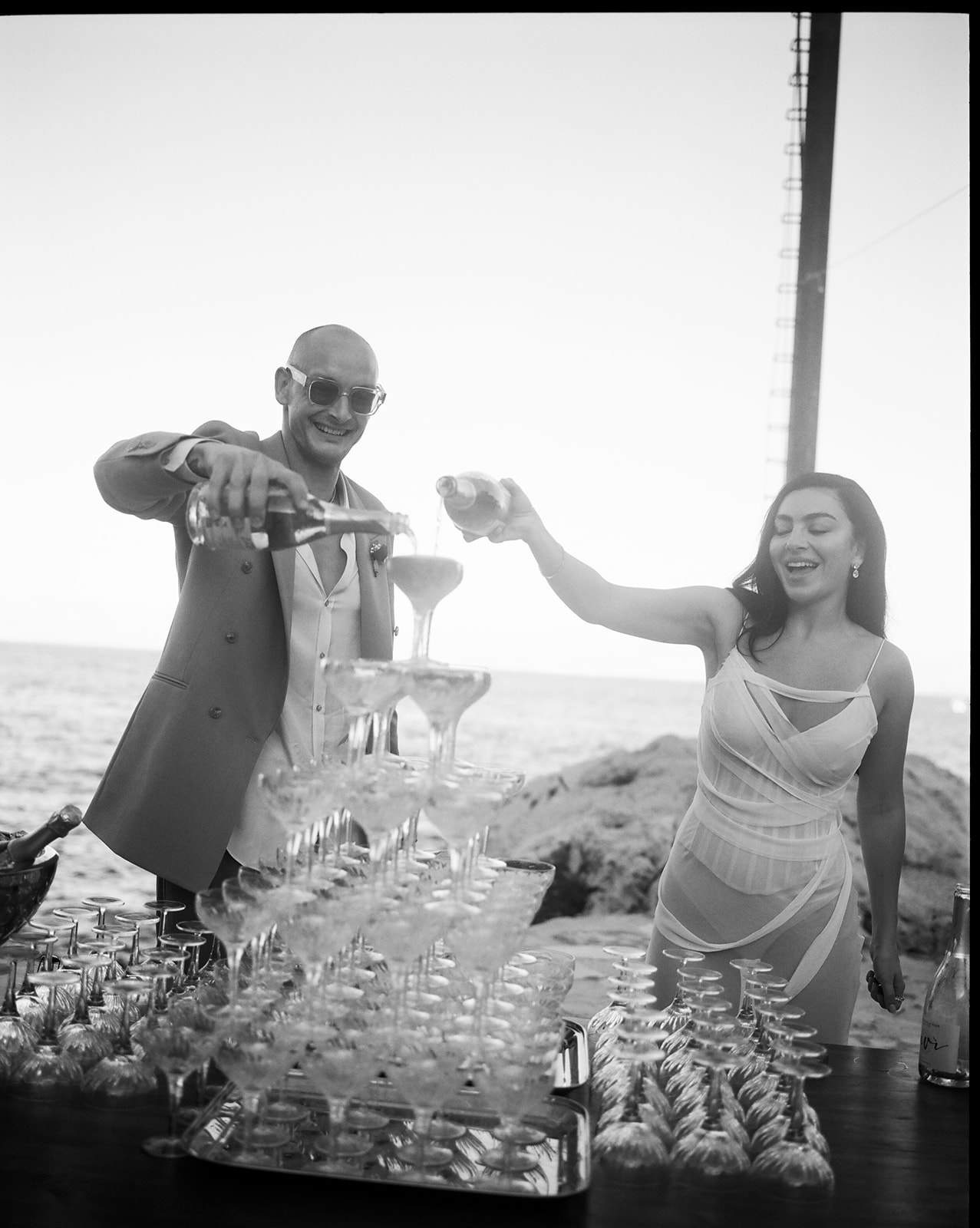 The bride wore Vivienne Westwood, with the groom’s suit and her bespoke veil designed by Kim Jones of Fendi & Dior. 300 guests descended on the 18th Century Tonnara near Palermo for a weekend of celebrations under the Sicilian sunshine. Colourful daytime fireworks were let off to Primal Scream’s ‘Come Together’ at the end of the beautiful ceremony by the water. Damien Lazaras and Lady Mary Charteris took to the decks on Saturday night and kept guests dancing until dawn.