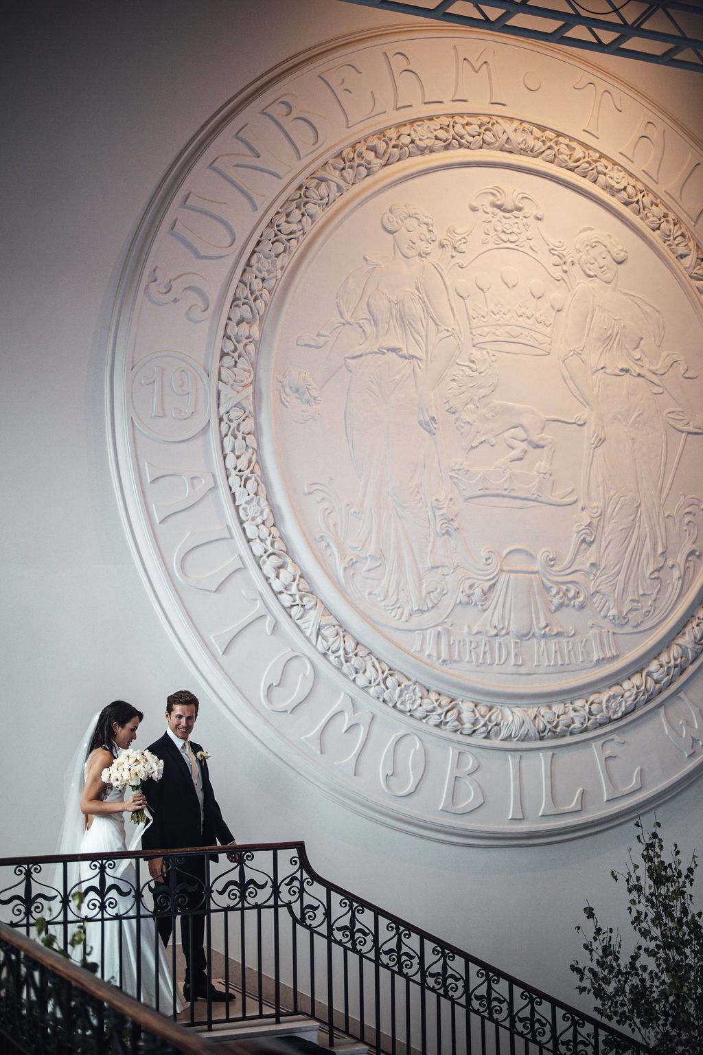The bride prepared in a suite at The Cadogan Hotel in Chelsea, and the guests looked ravishing in the black tie dress code. Our favourite florist Thomas Stanley-Allen transformed the space with a forest of trees, and twinkling candlelight to illuminate the room.